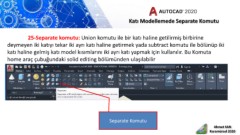 katı haline gelmiş katı model kısımlarını iki ayrı katı yapmak için kullanılır. Bu Komuta
