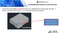 3-Daha önce öğrendiğimiz Extrude komutu ile bu dikdörtgen katı hale getirilir. (kalınlığı – Z