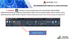 Subtract komutunun kullanımı önce komut seçilir sonra ana katı seçilir enter’e basılır sonra