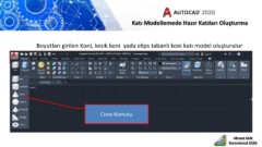 Boyutları girilen Koni, kesik koni yada elips tabanlı koni katı model oluşturulur