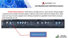 sonra ctrl tuşu ile işlem yapılan kısım tıklanıp düzenleme yapılabilir Solid History komutu