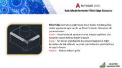 Fillet Edge komutu çalıştırılınca önce Radüs miktarı girilip