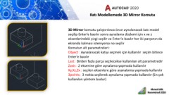 seçilip Enter’e basılır sonra aynalama düzlemi için x ve z