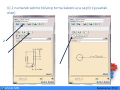 K) 2 numaralı sekme tıklanıp torna kalemi ucu seçilir (yuvarlak