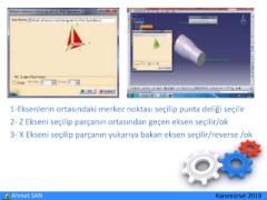 3- X Ekseni seçilip parçanın yukarıya bakan eksen seçilir/reverse /ok