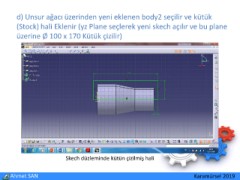 (Stock) hali Eklenir (yz Plane seçlerek yeni skech açılır ve bu plane