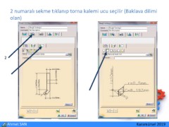 2 numaralı sekme tıklanıp torna kalemi ucu seçilir (Baklava dilimi