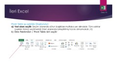b) Ekle Paletinden / Pivot Table biri seçilir