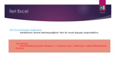 Kenidimizin ismine belirleyeceğimiz Yeni bir excel dosyası oluşturabiliriz.