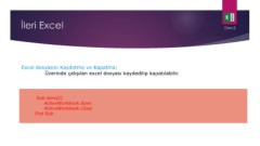 Üzerinde çalışılan excel dosyası kaydedilip kapatılabilir.