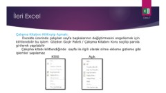 Çalışma kitabı kilitlendiğinde sayfa ile ilgili olarak silme ekleme gizleme gibi