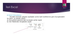 Excelde üzerinde çalışılan sayfadaki veriler belli özelliklerine göre Guruplanabilir