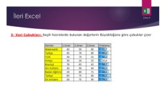 3- Veri Çubukları: Seçili hücrelerde bulunan değerlerin Büyüklüğüne göre çubuklar çizer