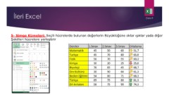 5- Simge Kümeleri: Seçili hücrelerde bulunan değerlerin Büyüklüğüne oklar ışıklar yada diğer