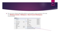 için Windows menüsü / Workspace / Reset Courrent Workspace