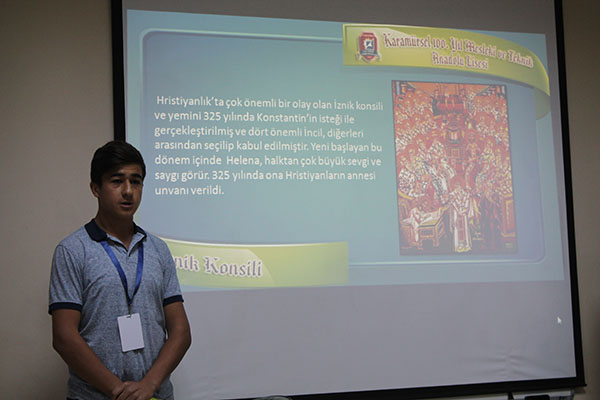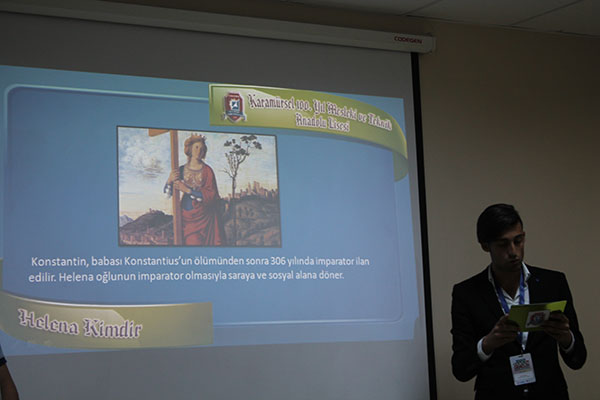 Kocaelideki bütün okullardan yapılan bidiri başvuruları bilim kurulu tarafından değerlendirilmiş ve kabul edilen 59 bildiri içerisinde yer alan okulunuza ait Karamürsel’li helena isimli bildiriyi öğrencilerimiz Yunus Emre Özyer ve Ferdi Arabacı Kocaeli Büyük Şehir Belediyesi Sivil Toplum Merkezinde 08.06.2016 tarihinde sunmuşlardır. Bildirimimiz jüri ve dinleyiciler tarafından büyük bir ilgi ile karşılanmıştır.